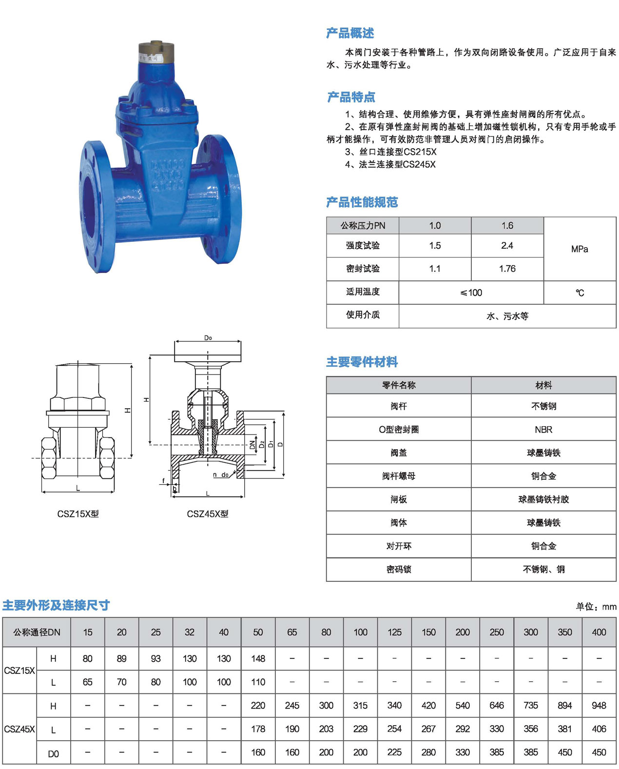 口徑:DN15~DN400mm